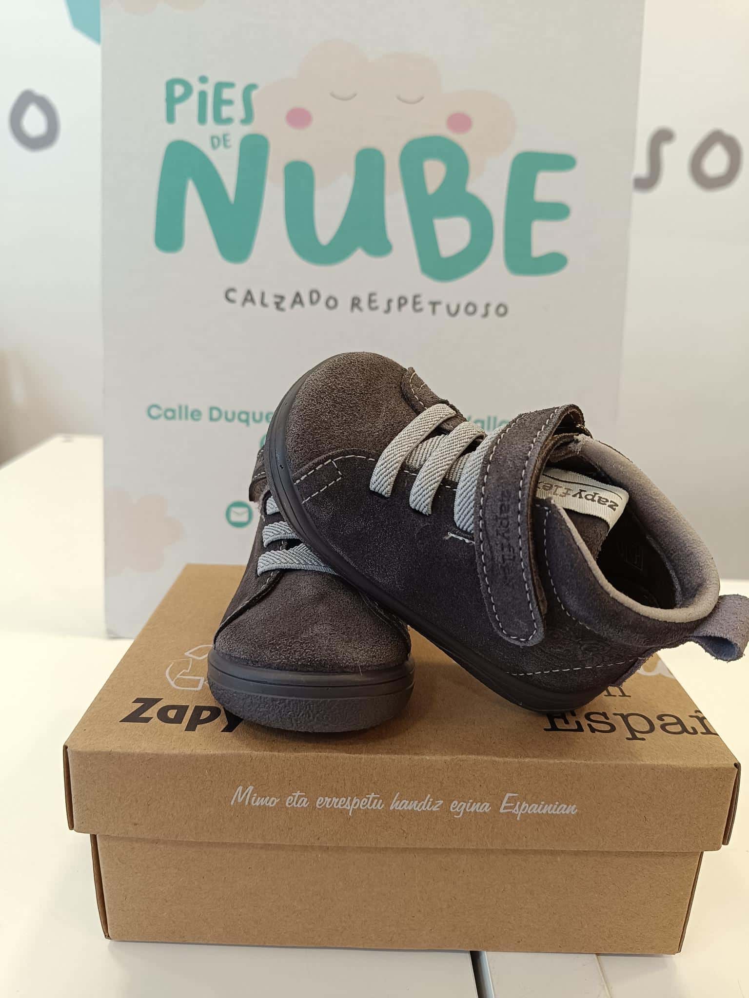 Suela fina y antideslizante, materiales blandos y transpirables, toe box ancho, sin refuerzos y con velcros para fomentar la autonomía.