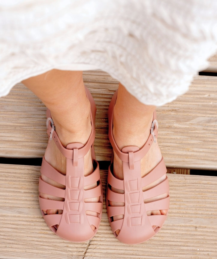 Cangrejera diseñada en concepto barefoot medium, cero drop, flexible y blandita, fabricada con al menos un 50% de pvc reciclado libre de ftalatos y cierre de hebilla ajustable.