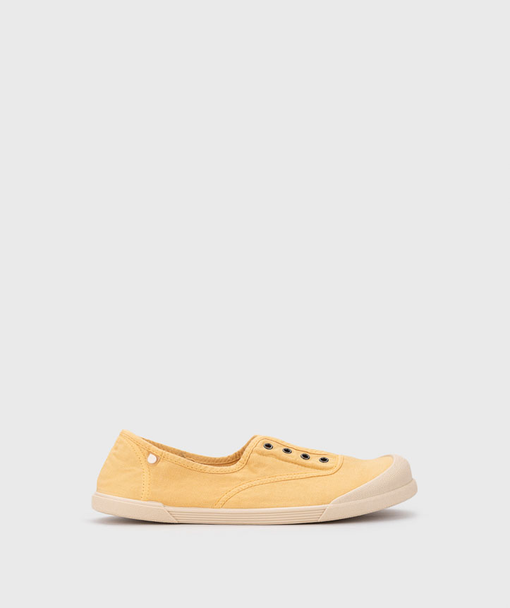 Zapatilla de lona de mujer 100% algodón, de concepto barefoot medium, cero drop, flexible, blandita y con plantilla extraíble. El tinte de nuestras lonas es irregular por su efecto lavado. Lavar en agua fría no sin antes extraer la plantilla.