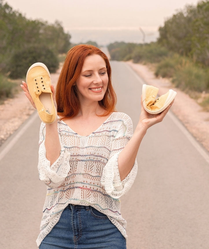 Zapatilla de lona de mujer 100% algodón, de concepto barefoot medium, cero drop, flexible, blandita y con plantilla extraíble.