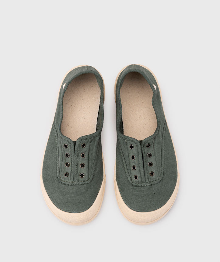 Zapatilla de lona de mujer 100% algodón, de concepto barefoot medium, cero drop, flexible, blandita y con plantilla extraíble.
