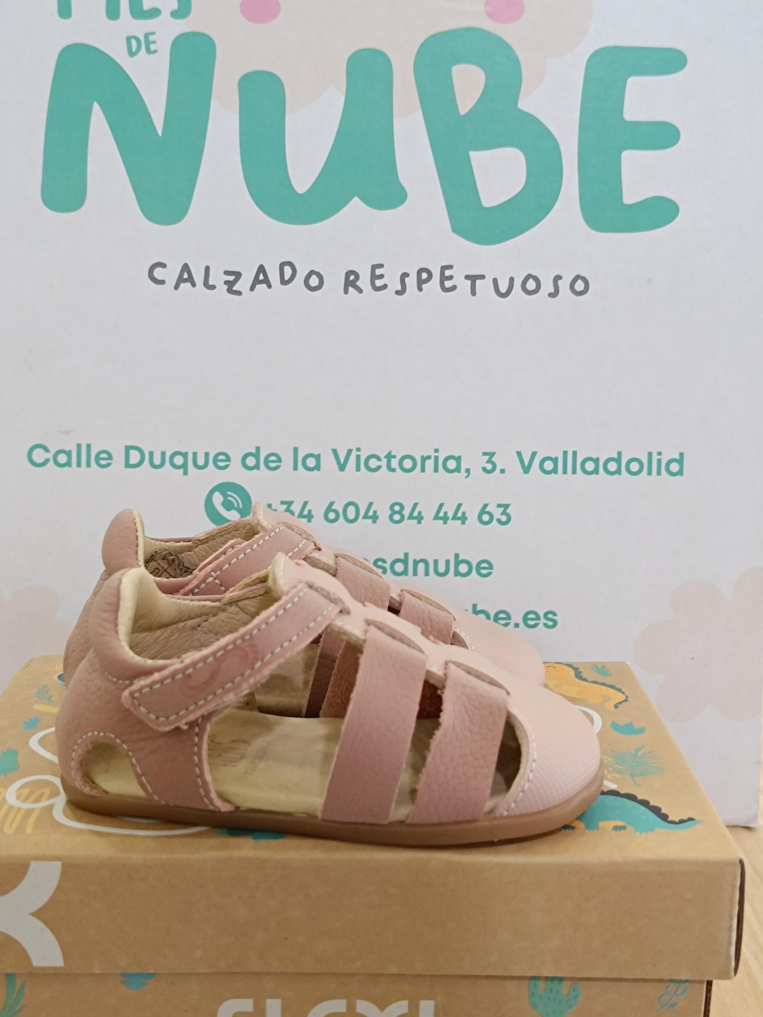 Suela fina y antideslizante, materiales blandos y transpirables, toe box ancho, sin refuerzos y con velcros para fomentar la autonomía.