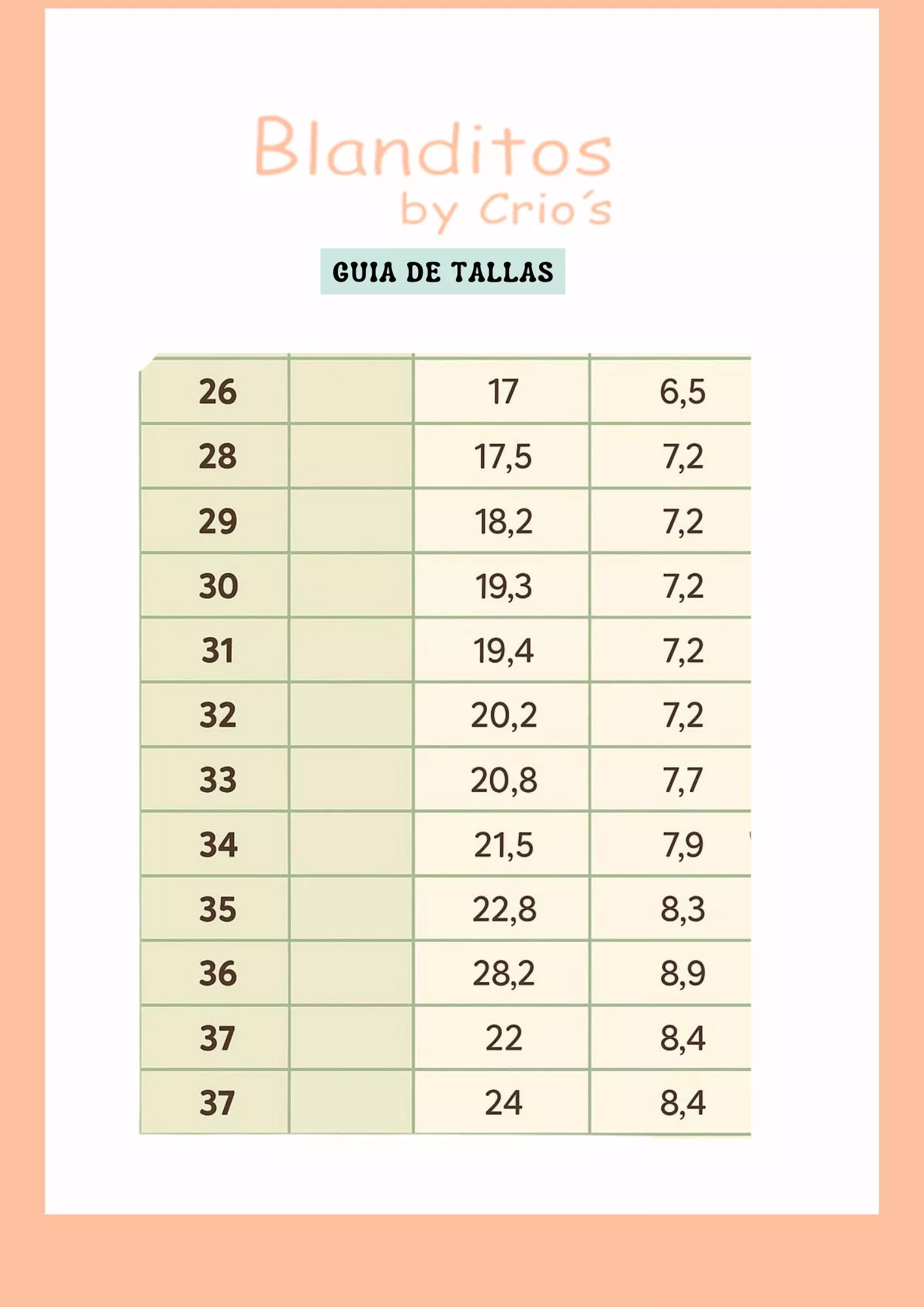 Guia de tallas: