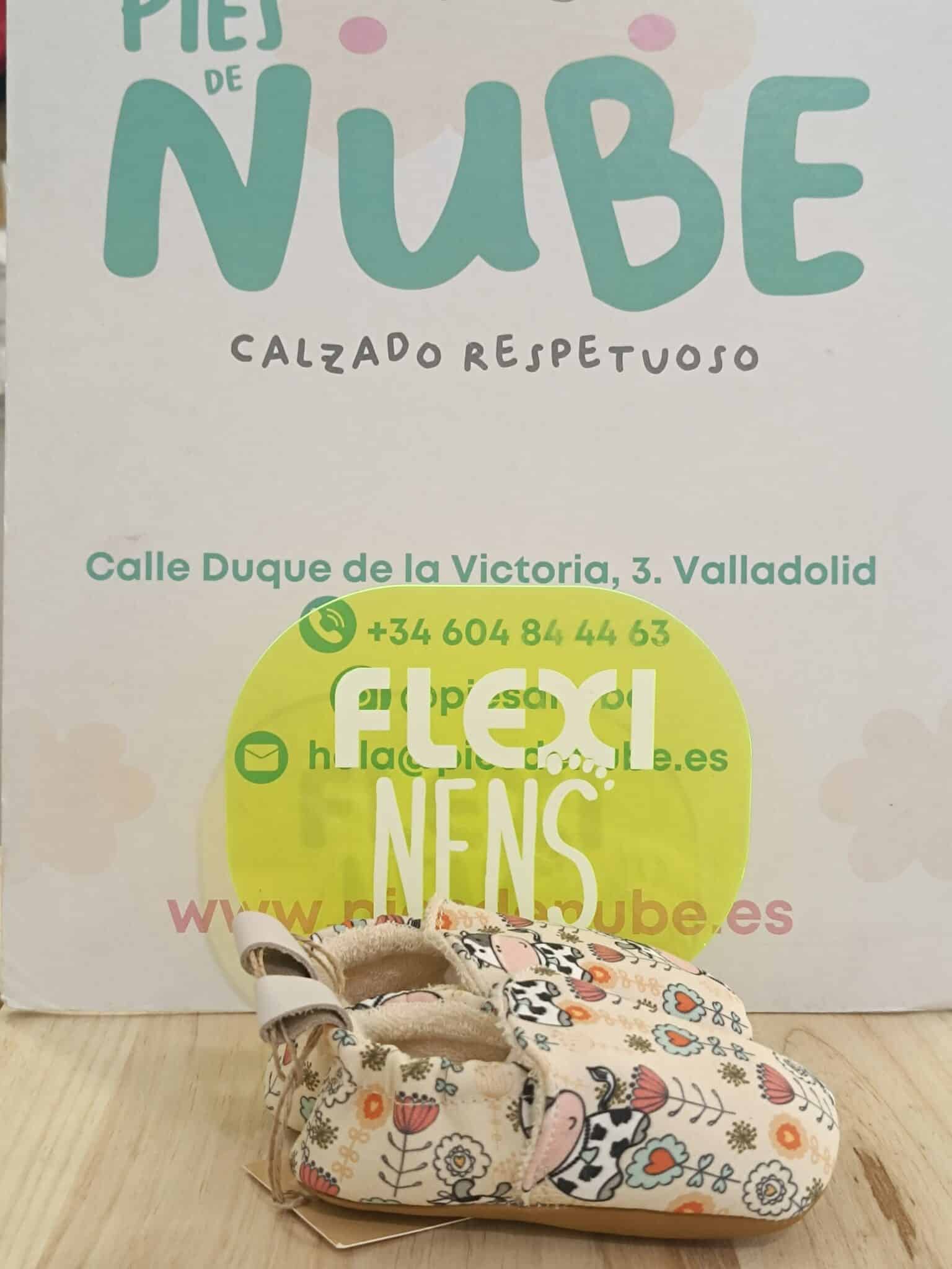 Suela fina y antideslizante, materiales blandos y transpirables, toe box ancho, sin refuerzos y con velcros para fomentar la autonomía.